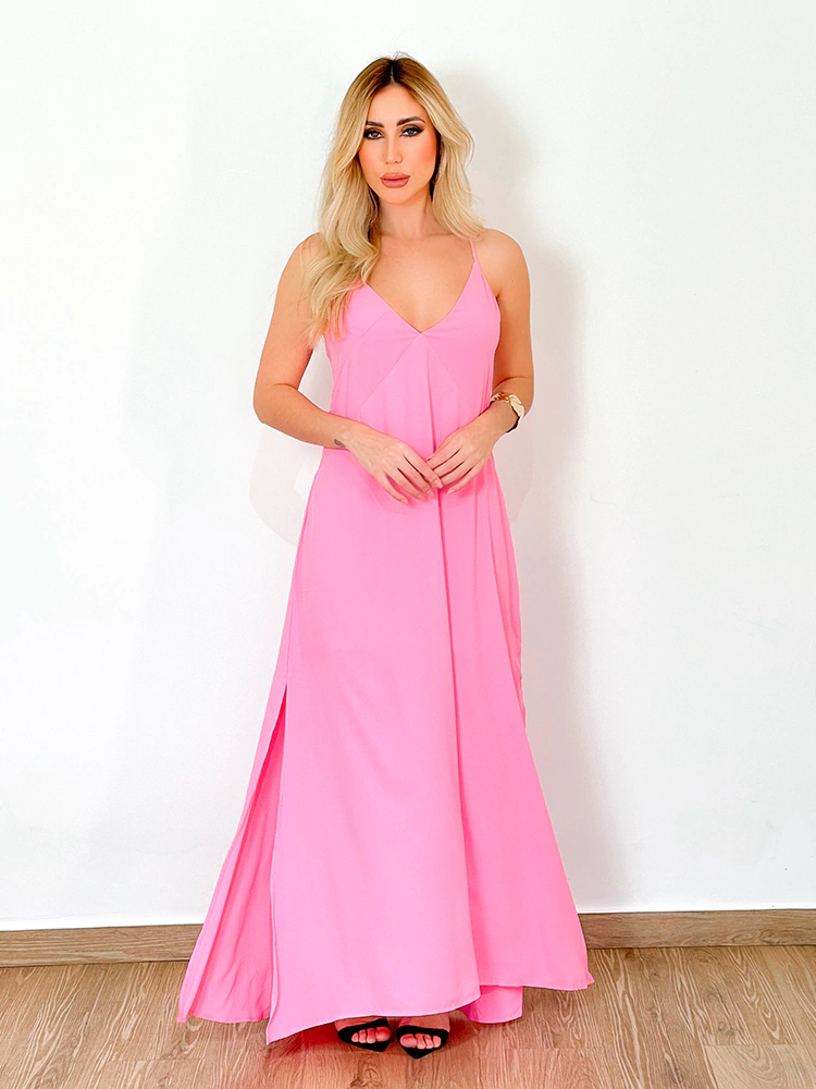 VESTIDO LUISA DECOTE V MIDI ROSA